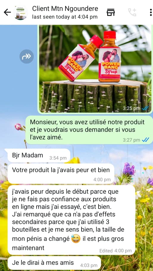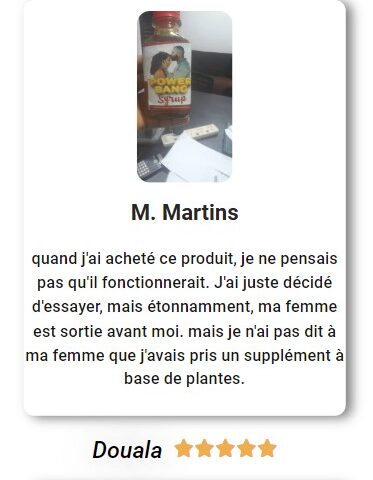 Bonjour monsieur, je suis heureux d'avoir acheté votre produit. J'avais du mal à éjaculer rapidement et j'avais toujours du mal à satisfaire ma femme. merci beaucoup d'avoir remis du piquant dans ma relation