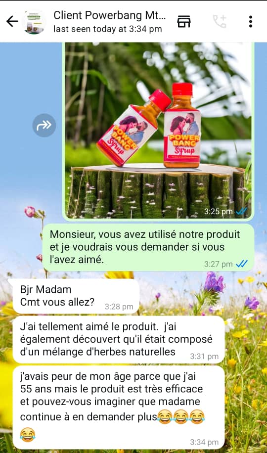 Le lendemain, elle a fait ses bagages et est partie. Son audace et son effronterie étaient sans égal, mais ce fut un tournant dans ma vie. Car j’ai rencontré un camarade de cours à l’université (Simon) qui m’a donné ce même produit à base de plantes qui a changé mon histoire !